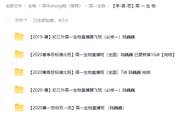 ├─【2020-暑】初三升高一生物直播腾飞班(必修一)陆巍巍 (1 folders, 10 files, 4.31 GB, 4.42 GB in total.)